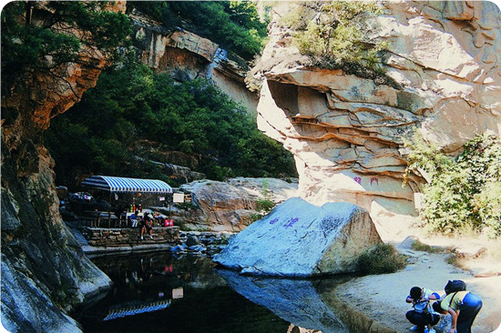 這條峽谷俗稱轱轆峪,窈窕峽長(zhǎng)蜿蜒曲折,峪谷兩壁陡峭奇聳,峰巒疊嶂。從頭到尾,處處新穎,決無(wú)重復(fù)之感,一進(jìn)潭頭,就把游人引入到瓊山閑境,使人心礦神怡,欣然前往。