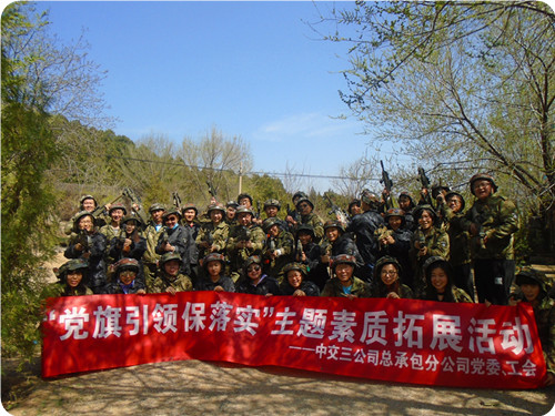 客戶名稱:中交第三公路工程局有限公司 活動(dòng)時(shí)間:2017年4月6日 活動(dòng)人數(shù):35人 活動(dòng)地點(diǎn)及形式:昌平區(qū)華寶山莊 真人CS戶外活動(dòng)+半日?qǐng)龅赝卣古嘤?xùn) 活動(dòng)項(xiàng)目:真人CS 蛟龍出海 超音速 活動(dòng)描述:由中交第三公路工程局有限公司組織,北京天地之美戶外拓展訓(xùn)練公司承辦,在昌平區(qū)華寶山莊組織的半日真人CS和半日?qǐng)龅赝卣够顒?dòng)的中,有效的挖掘出自身和團(tuán)隊(duì)的潛能,加強(qiáng)了職工的團(tuán)隊(duì)協(xié)作意識(shí),增強(qiáng)了凝聚力和戰(zhàn)斗力,展現(xiàn)出活力與風(fēng)采。 |